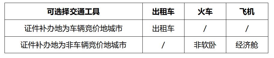 注:因证件补办所产生的相关交通费,全部由买受人承担;如产生的其他费用,由证件所有者提供相关票据,均由买受人承担。产生交通费的交通工具乘坐标准如下: