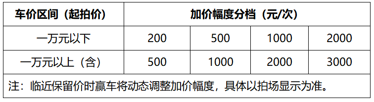 4.2拍卖加价不限次数,加价幅度如下: